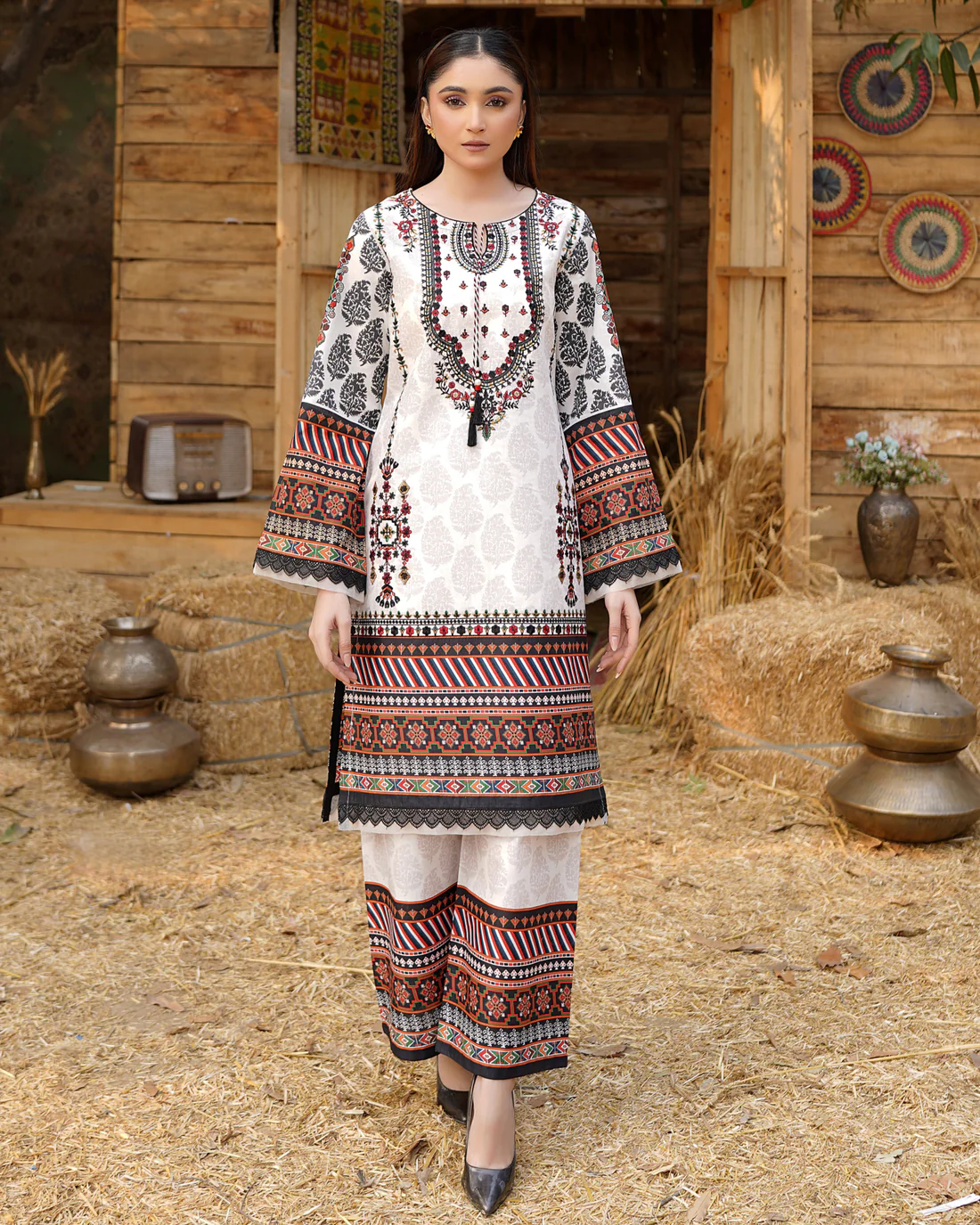 Be the first to review “2 Piece Stitched-Embroidered Cotton Lawn Suit-HR33”