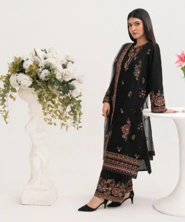 BLACK BLOSSOM EMBROIDERED 3-PCS -ARTICLE